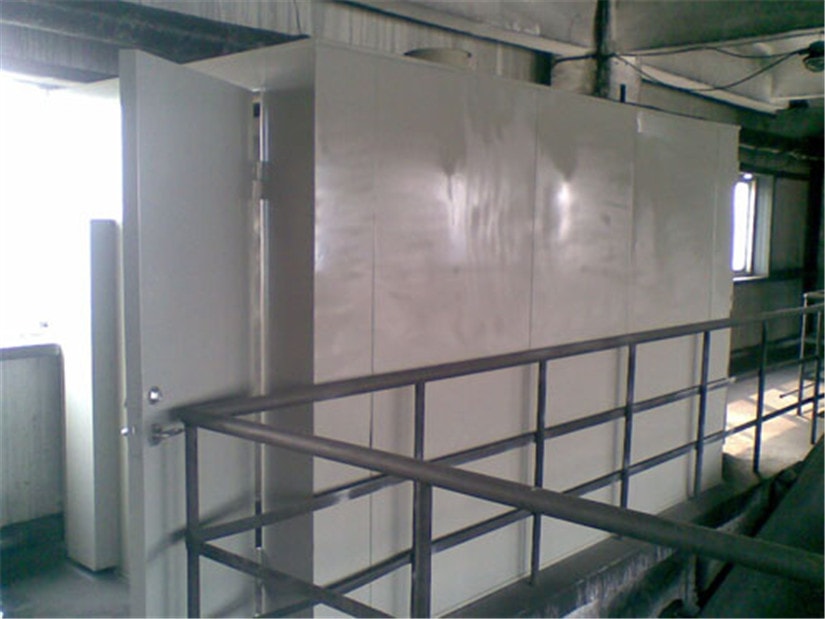 作為一種常規(guī)的噪聲控制方法,靜音室廣泛應用于隔離車間噪聲,常見的有固定式和活動式兩種。本項目中采用活動式結(jié)構(gòu)。結(jié)構(gòu)上應不影響場地布置與生產(chǎn)操作,容易拆裝和可觀察車間生產(chǎn)情況等。