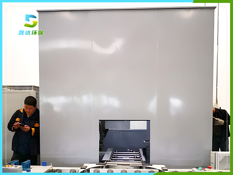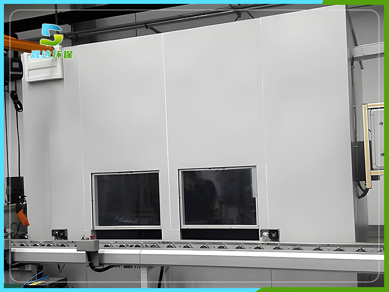 門窗關閉結合面采用密封嵌條密封;隔音房外接縫采用鋁合金嵌條壓接,整體美觀實用。.隔音房為五面體,四周依次為進料面、主操作面、成品收集面及后操面,各面設有透明觀察窗和操作者進出操作門,方便觀察沖床的工作情況。
