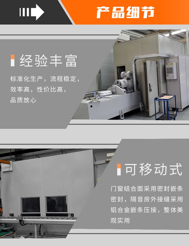 1、靜音房主體結構為防震框架型,采用模塊式拼裝,方便安裝和拆卸。