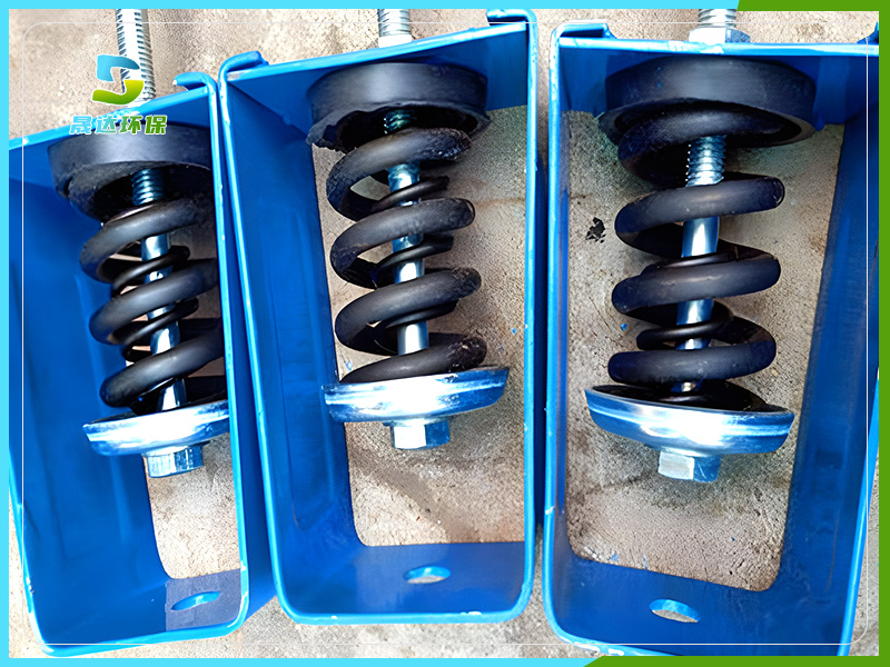 吊架減振器,采用特制的阻尼材料與特制的彈簧相結(jié)合,以金屬彈簧為主,具有自振頻率低,阻尼適當(dāng)、隔振降噪效果明顯的功能。在保證隔離中低頻噪聲時的良好效果同時避免高頻失效現(xiàn)象。